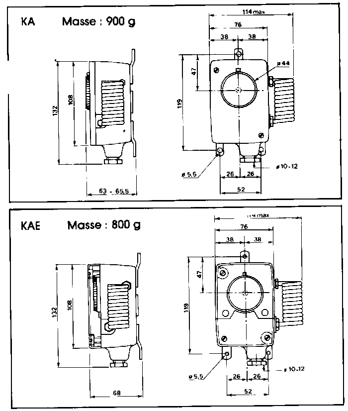 sensore a spirale fissato a lato della scatola (KA, KAE)