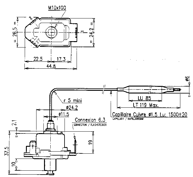Capillare e bulbo in rame (acciaio inox su richiesta - min. 500 pz.)